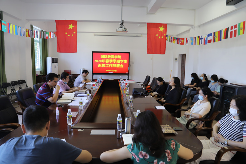 2020年4月30日下午,国际教育学院在学院104会议室召开全体教职工大会,对2020年春季学期国际学生返校工作进行动员部署。会议由党总支书记华世佳主持,院长周伟、副院长刘亮以及各科室成员和全体教师参加了会议。