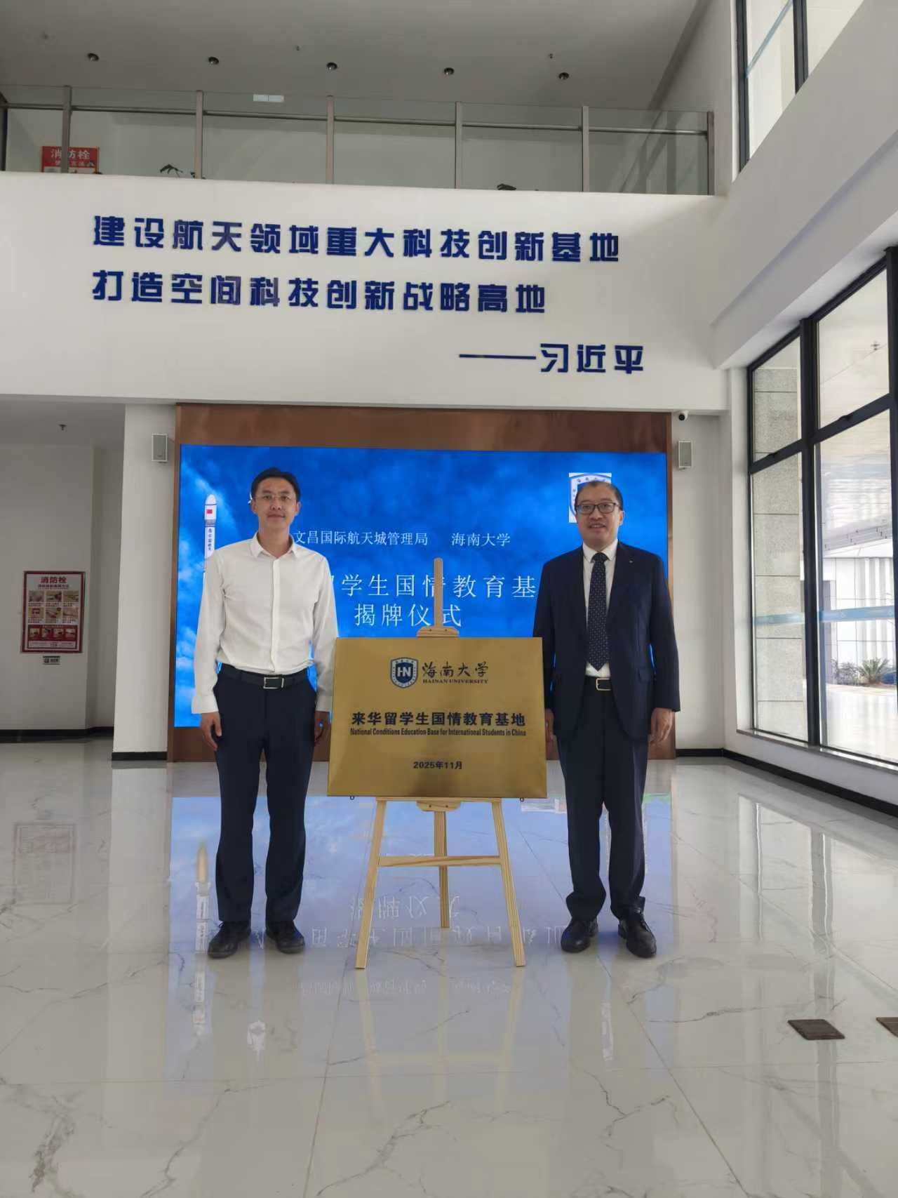 2025年11月12日(星期三)上午,海南大学与文昌国际航天城管理局举办“来华留学生国情教育基地”座谈及挂牌仪式。文昌国际航天城管理局副局长王凤宇,海南大学党委常委、副校长岳文以及相关部门负责人参加此次活动。